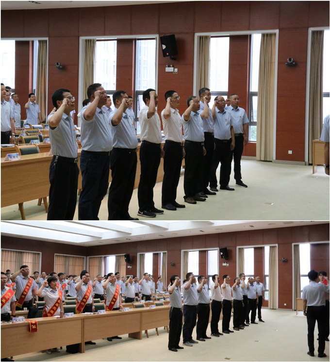 公司領(lǐng)導(dǎo)班子成員和全體與會人員一起重溫入黨誓詞
