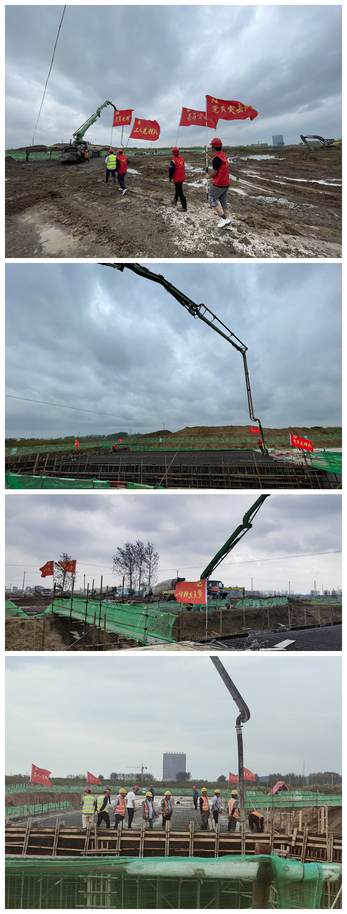 本次箱涵封頂,澆筑混凝土較多,且今年以來(lái),項(xiàng)目接連遭遇征地拆遷、雨水較多等困難。項(xiàng)目部始終圍繞“學(xué)黨史、保安康、搶工期、爭(zhēng)一流”的勞動(dòng)競(jìng)賽主題,秉持“工期就是效益”的理念,充分發(fā)揮黨員先鋒引領(lǐng)作用,通過(guò)組建青年突擊隊(duì)等措施,號(hào)召黨員青年沖鋒在前,與工人同吃苦、共奮斗,確保項(xiàng)目工作如期完成。最終,通過(guò)10個(gè)小時(shí)的努力施工,充分發(fā)揮青年突擊隊(duì)、黨員突擊隊(duì)作用,箱涵封頂混凝土澆筑工作圓滿(mǎn)完成。