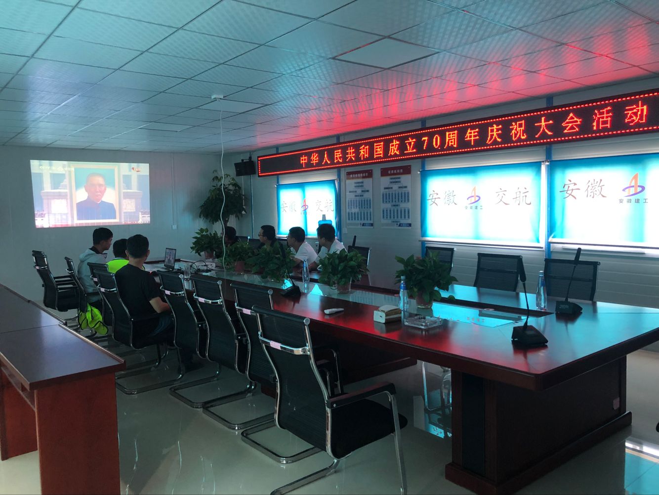 上午九點(diǎn)整,隨著中華人民共和國(guó)國(guó)歌,五星紅旗冉冉升起,項(xiàng)目部全體人員整齊的站立在旗臺(tái)前,向國(guó)旗行注目禮。隨后,大家在項(xiàng)目部會(huì)議室集體觀看閱兵儀式,共同慶賀祖國(guó)母親的生日。