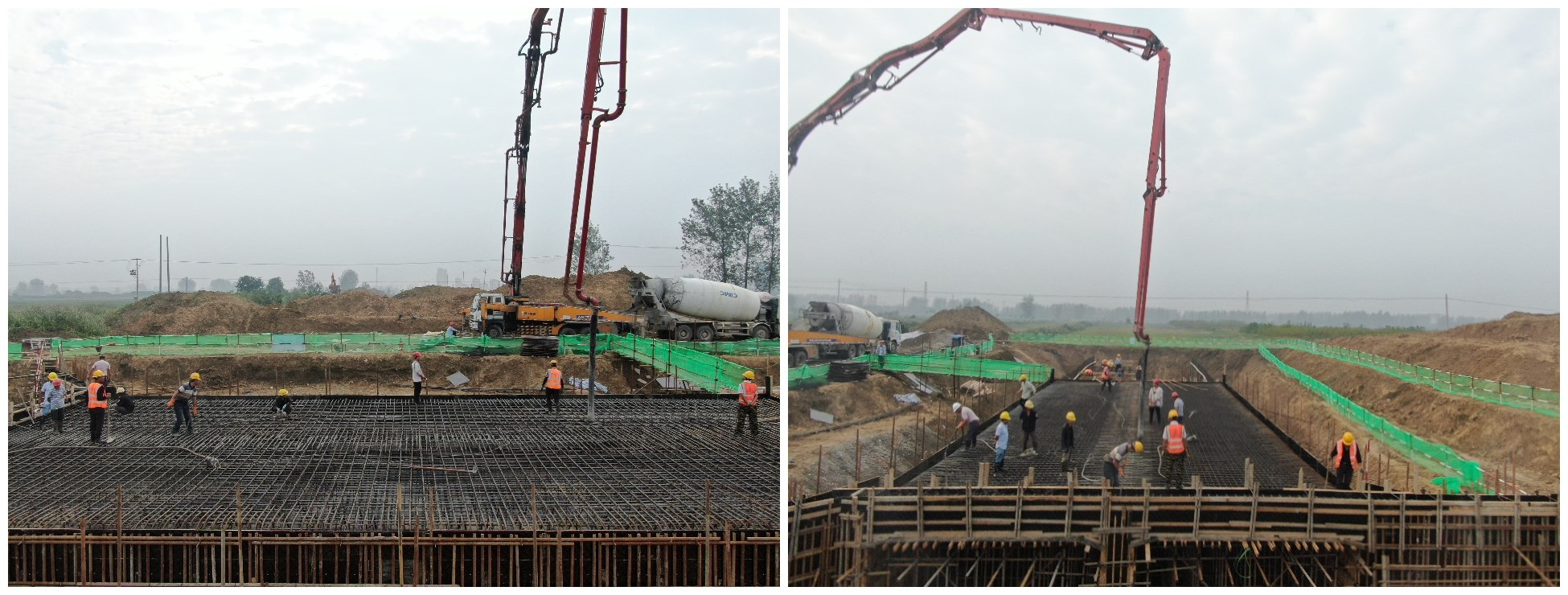 自儀式啟動(dòng)以來,為快速掀起大干快干熱潮,確保年底完成既定進(jìn)度產(chǎn)值,泗縣長(zhǎng)三角產(chǎn)業(yè)園項(xiàng)目緊緊圍繞項(xiàng)目年度生產(chǎn)任務(wù),秉持“工期就是效益”的理念,主動(dòng)對(duì)標(biāo)長(zhǎng)三角一體化發(fā)展城鄉(xiāng)建設(shè)示范性勞動(dòng)和技能競(jìng)賽,充分發(fā)揮主人翁精神和主力軍作用,確保項(xiàng)目工期、產(chǎn)值等各項(xiàng)任務(wù)圓滿實(shí)現(xiàn)。今年9月9日,在炎熱高溫天氣下,泗縣長(zhǎng)三角產(chǎn)業(yè)園項(xiàng)目龍河路箱涵,在超長(zhǎng)雨季間歇期完成的底板混凝土澆筑、頂板及側(cè)墻鋼筋綁扎、模板支設(shè),經(jīng)過監(jiān)理單位驗(yàn)收合格,終于迎來了頂板及側(cè)墻混凝土的澆筑。由于混凝土澆筑方量大,項(xiàng)目部提前向商混站報(bào)備所需泵車、混凝土標(biāo)號(hào)、方量,預(yù)計(jì)澆筑時(shí)間等計(jì)劃。9日清晨6點(diǎn)鐘,項(xiàng)目部技術(shù)管理人員到達(dá)磅房和施工位置,指揮泵車過磅,安排工人測(cè)溫及班前培訓(xùn)。在施工過程中,項(xiàng)目部技術(shù)管理人員時(shí)刻與工人一起,送藥送水,極大地鼓舞了廣大工人的生產(chǎn)熱情,經(jīng)過八個(gè)小時(shí)連續(xù)奮戰(zhàn),澆筑任務(wù)圓滿完成。