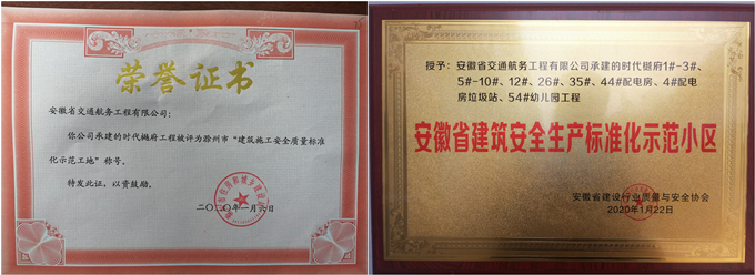 滁州時(shí)代樾府項(xiàng)目始終貫徹“精益求精、精細(xì)管理、精雕細(xì)刻、打造精品”的管理理念,采用策劃現(xiàn)行、制定措施、穩(wěn)步推進(jìn)、過程控制、嚴(yán)格把關(guān)、明確責(zé)任、獎(jiǎng)罰到位的方法和原則。重視現(xiàn)場(chǎng)安全文明施工,堅(jiān)持綠色施工,以人為本的管理理念,把工作作為現(xiàn)場(chǎng)控制的核心之一。施工過程中重視危險(xiǎn)源的分析識(shí)別與防控,嚴(yán)格落實(shí)國(guó)家和業(yè)主及建立的各項(xiàng)管理規(guī)章制度。項(xiàng)目先后被評(píng)為“安徽省建筑安全生產(chǎn)標(biāo)準(zhǔn)化示范小區(qū)”“滁州市建筑施工安全質(zhì)量標(biāo)準(zhǔn)化示范工地”“滁州市建設(shè)工程施工質(zhì)量標(biāo)準(zhǔn)化示范工程”,并被中新蘇滁產(chǎn)業(yè)園評(píng)為“2019年度建筑工程優(yōu)秀企業(yè)”、被北京城房評(píng)為“2019年度優(yōu)秀合作商”等榮譽(yù)稱號(hào)。