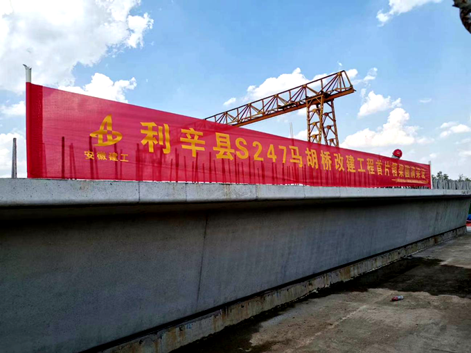 9月3日下午,安徽交航利辛縣S247馬胡橋改建工程施工現(xiàn)場車聲隆隆,重達100噸的30m箱梁隨著吊車的提升,開始進行架設(shè)。當日18點15分,隨著吊車掛鉤的摘取,箱梁精準落位在8#墩和9#橋臺臨時支座上方,首片引橋箱梁順利架設(shè)完成標志著馬胡橋改建工程進入橋面系及附屬施工階段,向?qū)崿F(xiàn)年底具備通車條件的目標邁出了堅實一步。