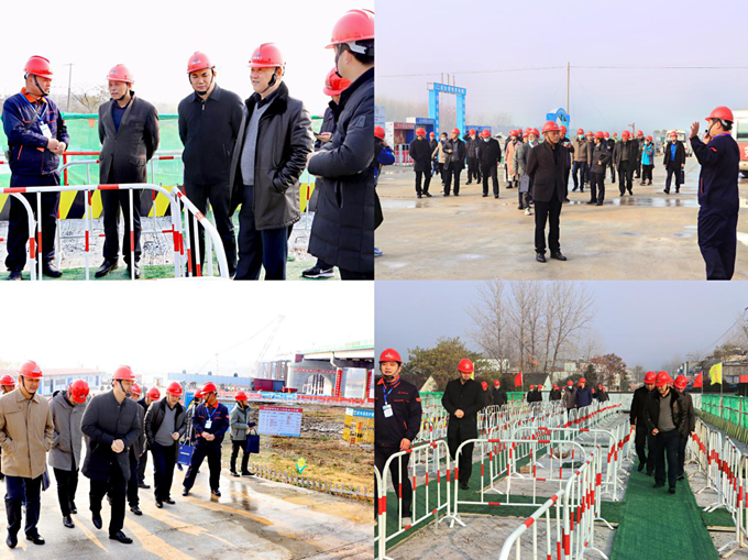 當(dāng)日上午,許克順和研討會成員們深入項目現(xiàn)場仔細觀摩,詳細了解了利辛馬胡橋的歷史和項目基本情況,參觀了馬胡橋橋北4#主墩、主橋鋼結(jié)構(gòu)半成品拼裝區(qū)及引橋,并通過關(guān)鍵部位專項講解以及圖文亮點展示等方式了解了馬胡橋項目在保障安全和質(zhì)量前提下“戰(zhàn)疫情、搶工期、促目標、促超產(chǎn)”勞動競賽取得的成果。觀摩中,許克順和研討會成員們一致認為,利辛馬胡橋項目現(xiàn)場功能區(qū)域劃分明確、建筑材料堆放有序、警示標識齊全醒目、防護設(shè)施標準規(guī)范,充分學(xué)習(xí)貫徹了集團“戰(zhàn)疫情、搶工期、促目標、促超產(chǎn)”勞動競賽文件精神并付諸于實際行動。
