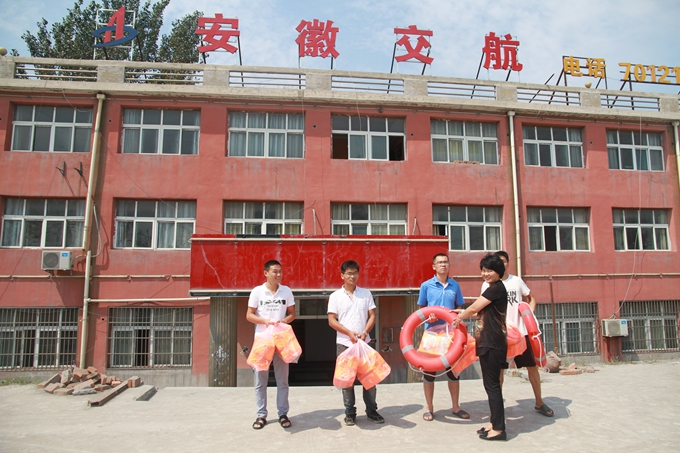 鐘德平一行在項目經(jīng)理的陪同下查看了施工現(xiàn)場,聽取了工程施工進度、質(zhì)量安全等工作情況的匯報后,鐘德平結(jié)合多年工作經(jīng)驗,深入淺出地為員工們講解了防汛相關(guān)知識,強調(diào)安全防汛工作的重要性,并代表淮北市海事局向項目部捐贈了防汛救生器材。