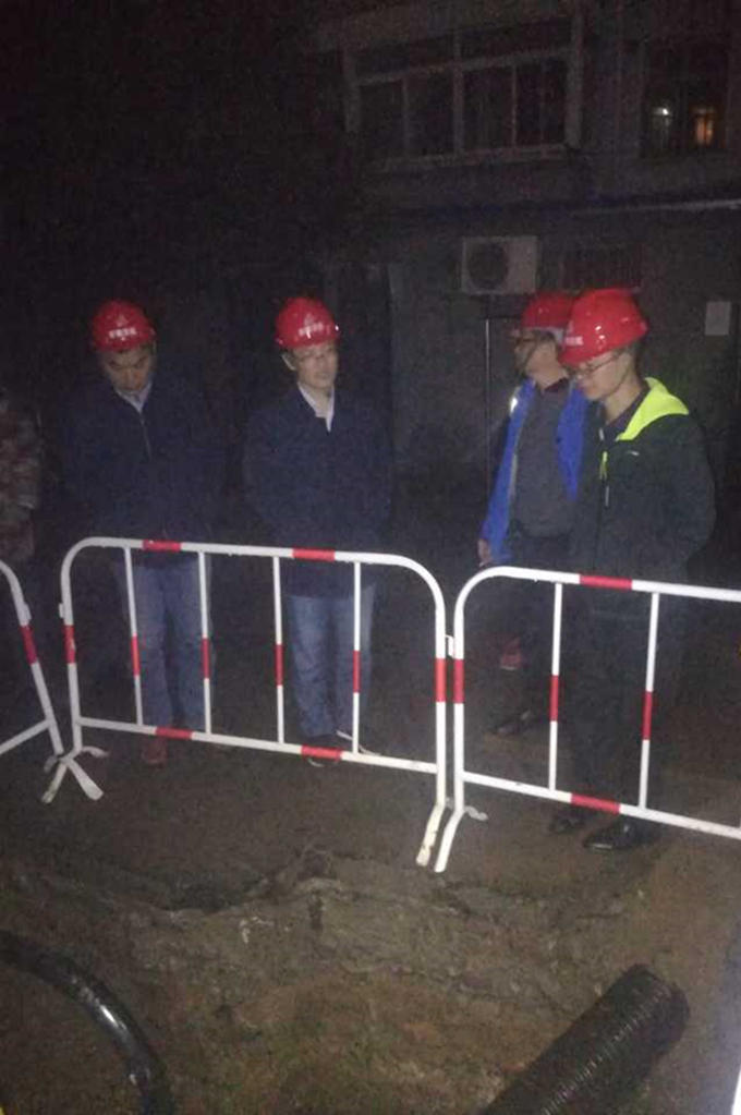會(huì)后,方總聽(tīng)說(shuō)雨污分流項(xiàng)目的部分同事還冒雨在現(xiàn)場(chǎng)施工,便與邵佳、李立柱等一行人匆忙驅(qū)車(chē)趕往施工現(xiàn)場(chǎng)指導(dǎo)、慰問(wèn)奮戰(zhàn)一線(xiàn)的同事,給年輕的同志打氣助力,在寒風(fēng)細(xì)雨中帶去了溫暖。