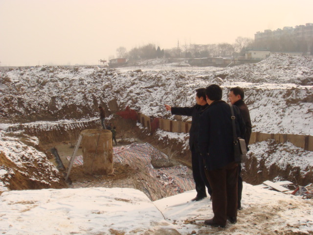 2010年1月10日公司盛智杰總工及公司有關(guān)部門負(fù)責(zé)人一行到泉河大橋檢查指導(dǎo)工作,經(jīng)過工地現(xiàn)場實(shí)地查看,以及項(xiàng)目部施工資料的檢查,7號(hào)、8號(hào)樁基承臺(tái)施工質(zhì)量符合設(shè)計(jì)要求,并且已通過工程監(jiān)理檢查及第三方檢測,可以進(jìn)行上部回填,其他樁基自檢質(zhì)量符合設(shè)計(jì)要求,已通過工程監(jiān)理簽證,待近日第三方檢測通過后進(jìn)入下道工序。箱梁預(yù)制在冬季采用蒸汽養(yǎng)護(hù),已制成的5根自檢質(zhì)量符合設(shè)計(jì)要求。