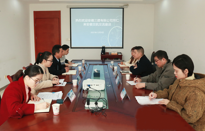 12月9日上午,安徽三建人力資源副主任王輝、郭長宏一行到訪安徽交航。公司黨委副書記、總經(jīng)理杜海峰在會(huì)議室熱情接待來訪客人,雙方就人力資源管理工作進(jìn)行深入座談交流。