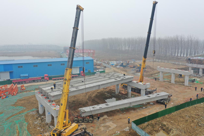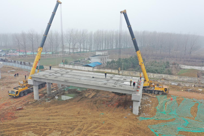 1月10日上午,利辛縣西淝河邵渡口大橋引橋箱梁架設施工正式開始,隨著橋北第一片箱梁的準確落位,標志著邵渡口大橋項目進入新的施工階段。