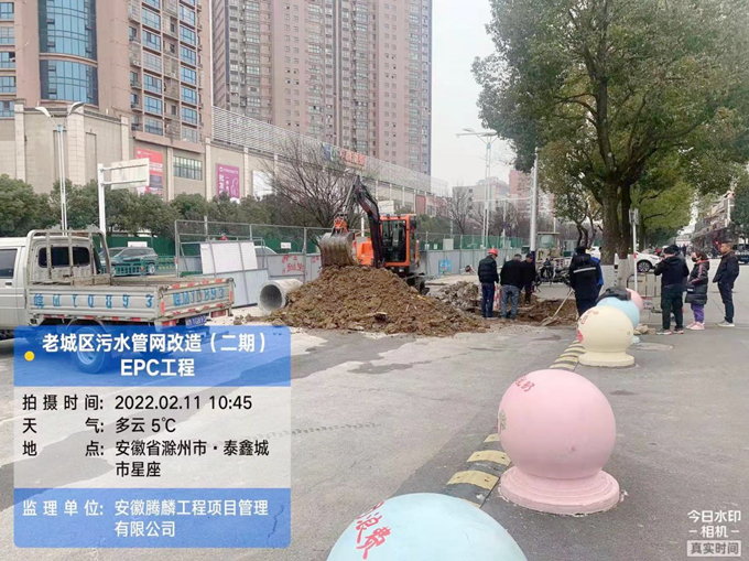2月11日,老城區(qū)污水管網(wǎng)改造項目正在進(jìn)行清流路和南譙路微頂管和支管接入施工