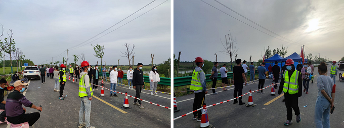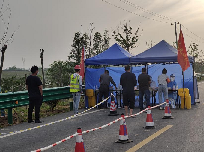 4月下旬以來(lái),利辛縣疫情防控形勢(shì)愈發(fā)嚴(yán)重。4月26日7時(shí),在接到當(dāng)?shù)卣痛逦瘯?huì)協(xié)助開(kāi)展疫情防控通知后,項(xiàng)目部立即安排青年志愿者配合當(dāng)?shù)蒯t(yī)務(wù)人員,協(xié)助布置核酸檢測(cè)點(diǎn),積極組織開(kāi)展第二輪全員核酸檢測(cè)工作。