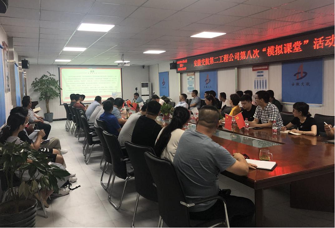 近日,二公司黨支部在瑤海區(qū)板橋河項(xiàng)目部會(huì)議室組織開展第八期“模擬課堂”活動(dòng),二公司領(lǐng)導(dǎo)班子成員,機(jī)關(guān)及在肥各項(xiàng)目職工參加,滁州各項(xiàng)目職工以視頻會(huì)議的方式參加。活動(dòng)由黨支部副書記鄭鵬主持。