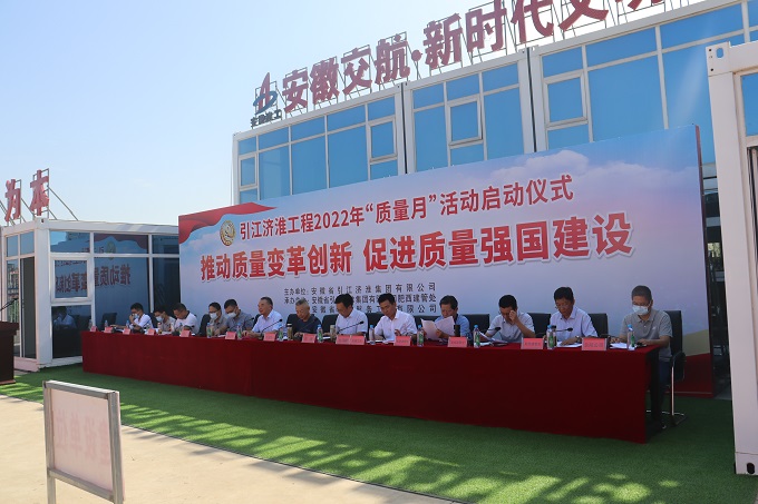 9月6日上午,引江濟(jì)淮工程2022年“質(zhì)量月”活動(dòng)啟動(dòng)儀式在安徽交航公司引江濟(jì)淮項(xiàng)目新時(shí)代文明實(shí)踐點(diǎn)成功舉辦。省引江濟(jì)淮集團(tuán)黨委委員、副總經(jīng)理陳圣剛,安徽交航公司黨委副書記、總經(jīng)理杜海峰出席會(huì)議。省引江濟(jì)淮集團(tuán)質(zhì)量安全管理部部長(zhǎng)錢建輝和所屬各建管處、子分公司負(fù)責(zé)人,各參建單位項(xiàng)目代表和一線隊(duì)伍代表參加儀式。