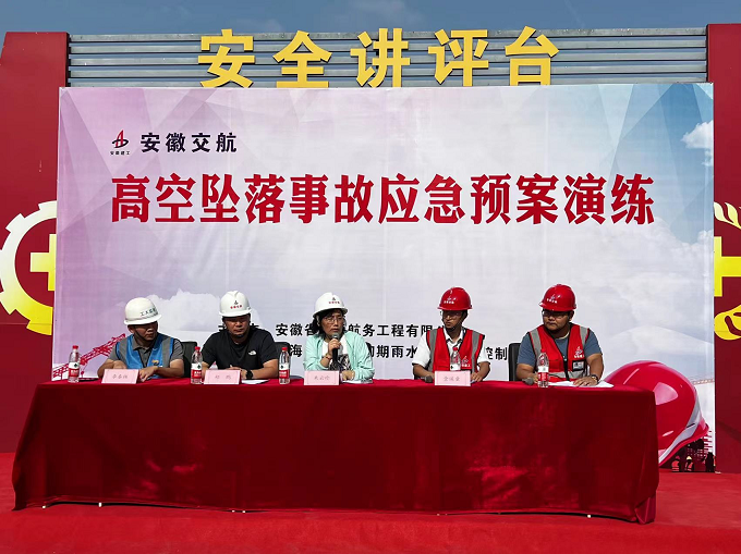 近期安徽省高墜事故頻發(fā),為了更好的學習貫徹“9.23省安委會全體會議”會議精神,提高廣大員工安全意識,普及應急救援知識。9月29日下午,安徽交航公司在合肥市瑤海區(qū)板橋河項目部開展高空墜落應急預案演練活動。公司安全環(huán)保監(jiān)察部、監(jiān)理單位、在肥項目部管理人員及施工班組人員參加活動。演練由項目經理金遙童主持。