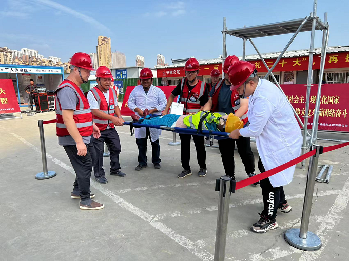 下午3時許,模擬演練調蓄池腳手架拆除施工時發(fā)生高空墜落事故,項目部立即啟動《高空墜落事故應急預案》。保衛(wèi)小組拉警戒帶進行隔離,指揮交通保證救援通道暢通。救援小組在確保自身安全的情況下搶險救援。救護車達到事故現場后,救援小組配合醫(yī)生將傷者移至救護車,并指定人員隨車前往醫(yī)院。事故調查組將事故原因初步調查結果向項目經理匯報,后續(xù)對事故責任做出書面匯報。