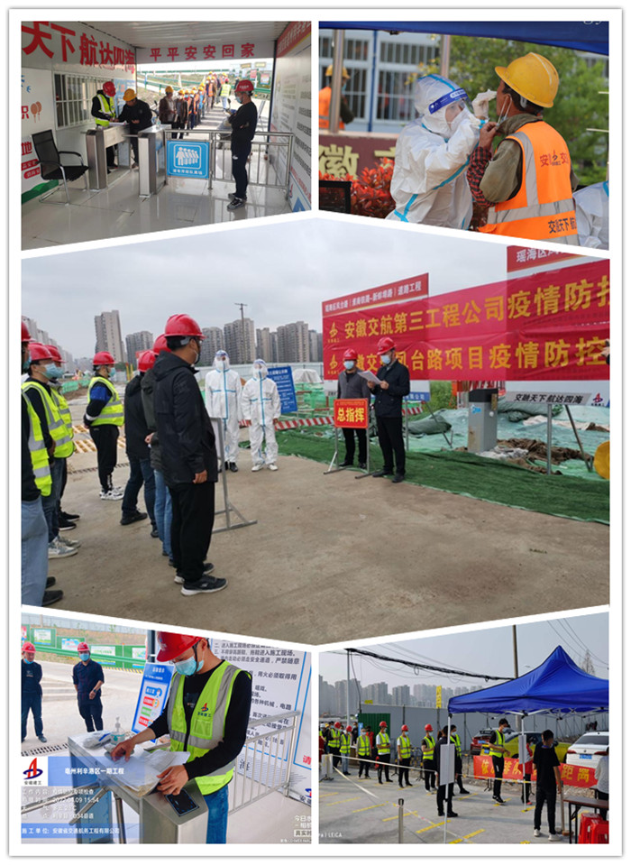 “請(qǐng)大家戴好口罩有序排隊(duì),前后人員保持一米距離?!薄澳茫鍪灸陌部荡a和行程卡,并接受體溫檢測(cè)?!比涨?,利辛縣邵渡口大橋項(xiàng)目部聯(lián)合邵渡口村委會(huì),集中組織28名管理人員及120名勞務(wù)班組作業(yè)人員依次進(jìn)行核酸檢測(cè)、體溫測(cè)量和信息登記。二公司、三公司、亳州利辛港區(qū)項(xiàng)目部、滁州項(xiàng)目部等基層單位及時(shí)召開專題會(huì)議,按照公司黨委要求,積極落實(shí)疫情防控措施、制定抗疫方案,對(duì)工作人員進(jìn)行常態(tài)化體溫檢測(cè)、定期核酸檢測(cè)、兩碼聯(lián)查登記、人員進(jìn)出管控,并積極加強(qiáng)防疫宣傳、定期消殺及物資儲(chǔ)備……多措并舉阻斷疫情擴(kuò)散,確保疫情防控措施落實(shí)到位,強(qiáng)化疫情源頭防控。