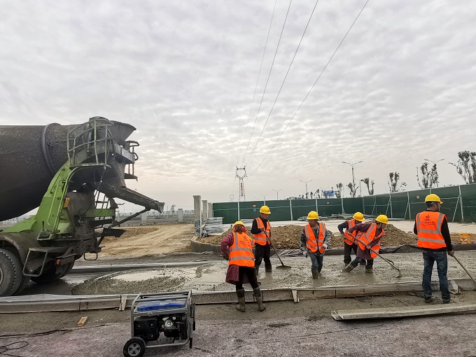 在保證安全質(zhì)量的前提下,項(xiàng)目部搶工期、抓安全,嚴(yán)格按照施工規(guī)范和設(shè)計(jì)圖紙要求,加班加點(diǎn)。圓滿完成10月16日2號廠房基礎(chǔ)所有承臺(tái)澆筑的既定任務(wù),為上部結(jié)構(gòu)施工打下了良好基礎(chǔ)。同時(shí),園區(qū)的道路混凝土施工也在緊鑼密鼓的進(jìn)行中,整體施工局面全面鋪展。