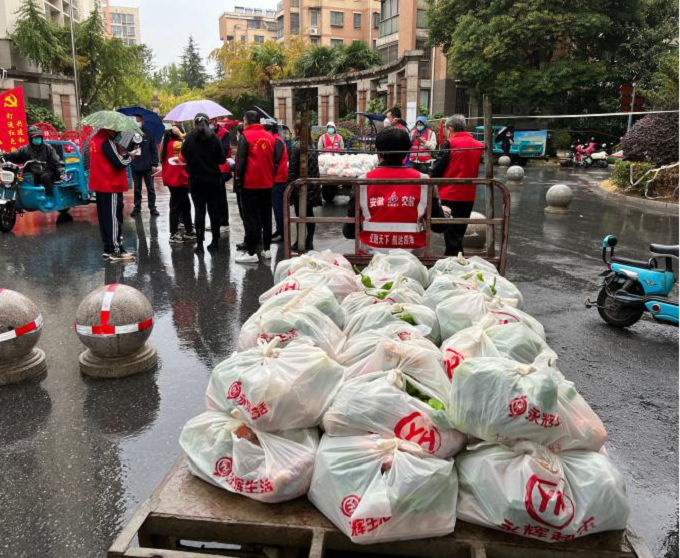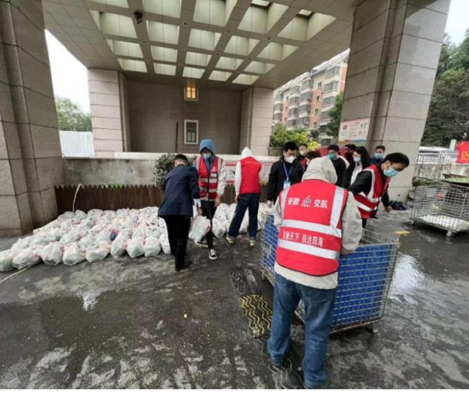 10月26日下午15時(shí),項(xiàng)目部接到嘉山路街道工作人員電話,轄區(qū)內(nèi)美晨雅閣小區(qū)急需人員、車輛協(xié)助發(fā)放居民生活物資。項(xiàng)目部第一時(shí)間組織志愿者前往該小區(qū)提供志愿服務(wù),志愿者們與社區(qū)工作人員密切配合,一邊緊張有序地裝卸物資,逐個(gè)樓棟進(jìn)行發(fā)放,一邊耐心地安撫居民情緒,維持現(xiàn)場(chǎng)秩序,直至晚上21時(shí),順利完成小區(qū)一千多戶居民生活物資的發(fā)放,切實(shí)保障了群眾的正常生活。