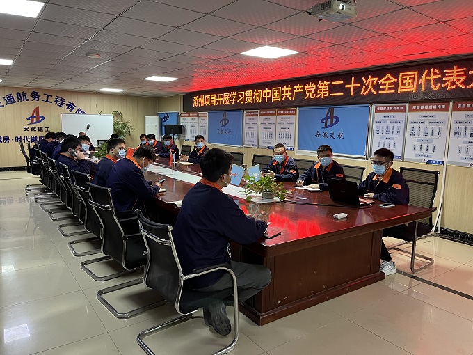 10月27日,滁州項(xiàng)目黨支部組織項(xiàng)目全體人員在會(huì)議室召開(kāi)學(xué)習(xí)宣貫中國(guó)共產(chǎn)黨第二十次全國(guó)代表大會(huì)精神專題會(huì)議,項(xiàng)目經(jīng)理王德生主持會(huì)議。