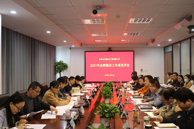 為進(jìn)一步鞏固巡察整改工作成果,壓實(shí)被巡察單位整改主體責(zé)任,11月23日下午,集團(tuán)紀(jì)委機(jī)關(guān)、黨委工作部、巡察辦、巡察組4個(gè)部門和機(jī)構(gòu)組成評(píng)估檢查小組,對(duì)安徽交航黨委2021年巡察整改工作成效進(jìn)行現(xiàn)場(chǎng)評(píng)估。安徽交航巡察整改工作領(lǐng)導(dǎo)小組副組長(zhǎng)黃國(guó)平及機(jī)關(guān)各部門負(fù)責(zé)人參加會(huì)議。