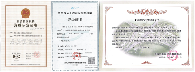 2022年全體員工在檢測任務重、疫情反復等不利情況下,凝心聚力、團結一致、任勞任怨,堅持一人多崗,一邊抓生產(chǎn)經(jīng)營一邊抓資質(zhì)提升。4月取得了公路工程綜合乙級等級證書, 11月首個授權工地試驗室--徐淮阜高速宿州段路基施工02標工地試驗室在安徽省交通工程質(zhì)量安全管理服務中心組織的專家組備案審查中獲得一致好評,取得了業(yè)主單位頒發(fā)的合格證書,標志著品創(chuàng)檢測公司發(fā)展和管理進入新階段。