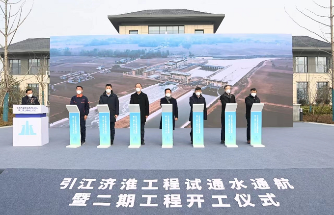 2022年12月30日上午10時(shí),引江濟(jì)淮工程試通水通航暨二期工程開(kāi)工儀式在安徽省交通航務(wù)工程有限公司(以下簡(jiǎn)稱(chēng)“安徽交航公司”)承建的引江濟(jì)淮工程(安徽段)巢湖湖區(qū)航道及派河口服務(wù)區(qū)廣場(chǎng)成功舉行。省委書(shū)記鄭柵潔出席,省長(zhǎng)王清憲致辭,河南省省長(zhǎng)王凱視頻連線講話(huà),水利部副部長(zhǎng)劉偉平、交通運(yùn)輸部總工程師兼水運(yùn)局局長(zhǎng)李天碧及國(guó)家發(fā)展改革委有關(guān)負(fù)責(zé)同志講話(huà),國(guó)家開(kāi)發(fā)銀行、水利部長(zhǎng)江水利委員會(huì)、水利部淮河水利委員會(huì)、交通運(yùn)輸部長(zhǎng)江航管局有關(guān)負(fù)責(zé)同志,省領(lǐng)導(dǎo)張韻聲、張曙光,安徽省引江濟(jì)淮集團(tuán)有限公司相關(guān)領(lǐng)導(dǎo)出席。省委常委、省政府黨組副書(shū)記費(fèi)高云主持。