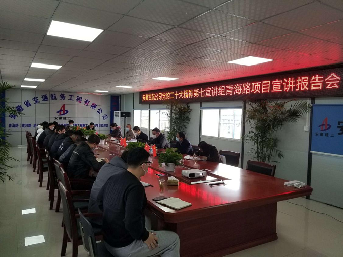 安徽交航公司機(jī)關(guān)有關(guān)部門負(fù)責(zé)人、第三工程公司黨支部書記、機(jī)關(guān)部分職工、青海路項(xiàng)目職工、瑤海雨污項(xiàng)目職工現(xiàn)場參加宣講,運(yùn)河新城項(xiàng)目職工視頻參會(huì)。