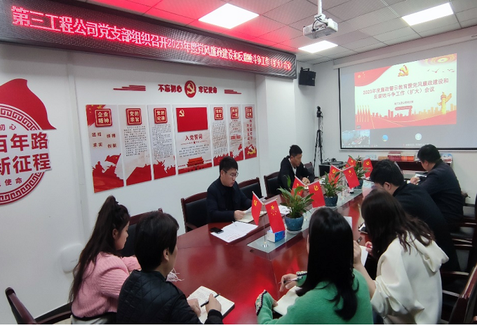 3月24日下午,第三工程公司召開2023年黨風(fēng)廉政建設(shè)和反腐敗工作會(huì)議,全面總結(jié)2022年黨風(fēng)廉政建設(shè)和反腐敗工作,對(duì)2023年重點(diǎn)工作進(jìn)行部署。會(huì)議由黨支部書記、副總經(jīng)理顏海峰主持。