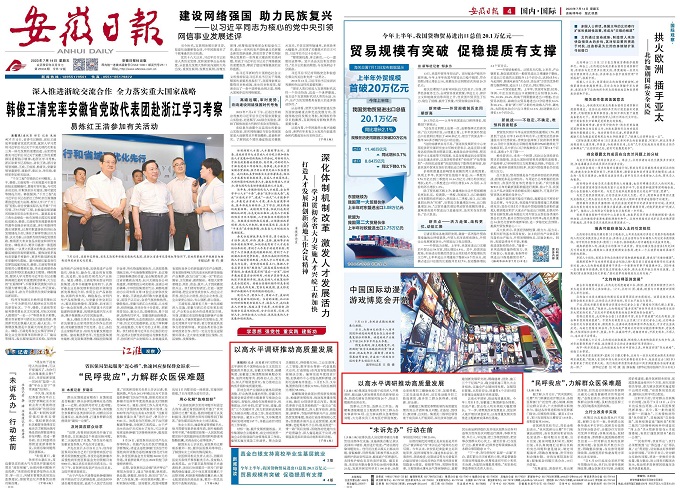 7月14日,安徽日報以《以高水平調(diào)研推動高質(zhì)量發(fā)展》為題報道安徽建工集團主題教育開展情況。以下是報道部分內(nèi)容: