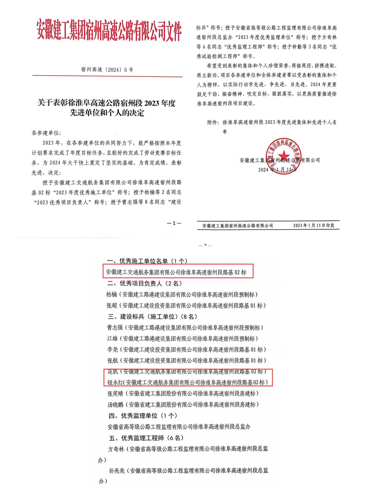 近期,安徽建工集團(tuán)宿州高速公路有限公司召開了2023年度總結(jié)暨2024年工作部署會,表彰2023年徐淮阜高速公路宿州段先進(jìn)單位和先進(jìn)個人。建工交航徐淮阜高速宿州段路基工程02標(biāo)項(xiàng)目表現(xiàn)優(yōu)異,各項(xiàng)工作推進(jìn)有力,產(chǎn)值進(jìn)度超前完成,在年度綜合評比中取得第一名,榮獲了“2023年度優(yōu)秀施工單位”“2023年度勞動競賽第一名”和2名“建設(shè)標(biāo)兵”榮譽(yù)稱號。