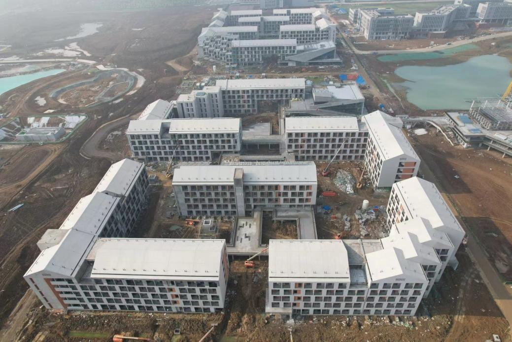 安徽醫(yī)科大學新醫(yī)科中心(新校區(qū))一期項目一批次建安工程施工及總承包服務項目位于位于合肥市肥西縣獨秀園與李陵山路交口東北角,建筑面積約20萬㎡,合同額約3.7億元。主要建設內(nèi)容包括D-1生活組團、D-2生活組團等土建、裝飾和安裝工程。自復工以來,項目緊鑼密鼓推進施工任務,目前主體結(jié)構(gòu)已全部完成,外墻裝飾完成90%,內(nèi)裝飾瓷磚完成95%,機電安裝完成80%,累計完成產(chǎn)值3.05億元。項目建設過程中克服了合同節(jié)點時間緊、施工任務艱巨等諸多困難。項目建成后,將對接長三角一體化發(fā)展戰(zhàn)略,打造“政產(chǎn)學研用”一體化新校區(qū),形成“學科+產(chǎn)業(yè)+專業(yè)”的醫(yī)學科創(chuàng)集群。