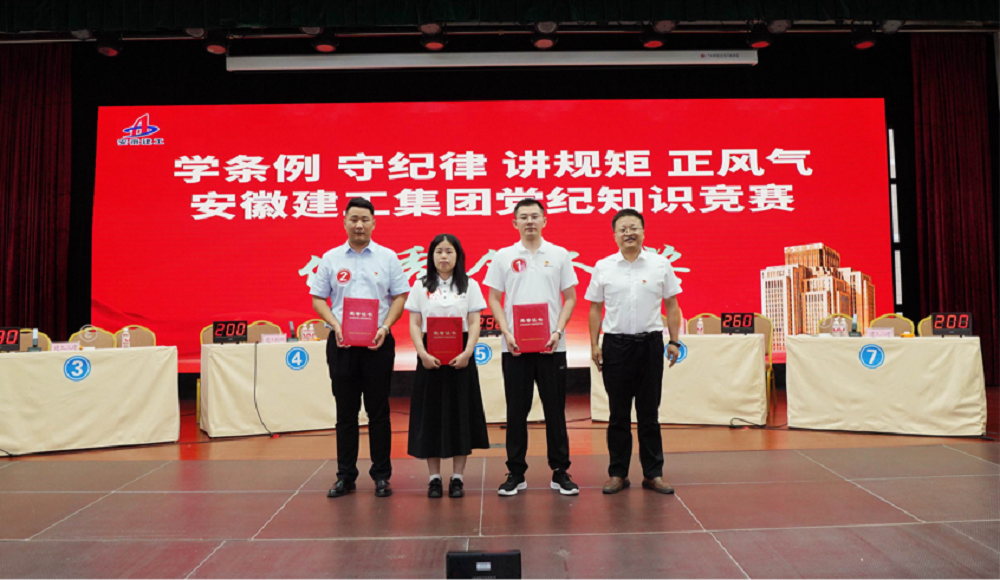 7月17日下午,由安徽建工集團(tuán)黨委主辦,安徽建工建設(shè)投資集團(tuán)黨委承辦的“學(xué)條例 守紀(jì)律 講規(guī)矩 正風(fēng)氣”黨紀(jì)知識競賽落下帷幕,來自集團(tuán)系統(tǒng)的24支隊(duì)伍經(jīng)過預(yù)賽、決賽的激烈角逐,由水建分公司的徐鵬、朱奇和全椒建投的吳瑩組成的公司代表隊(duì)榮獲二等獎,其中水建分公司朱奇獲優(yōu)秀個人獎。