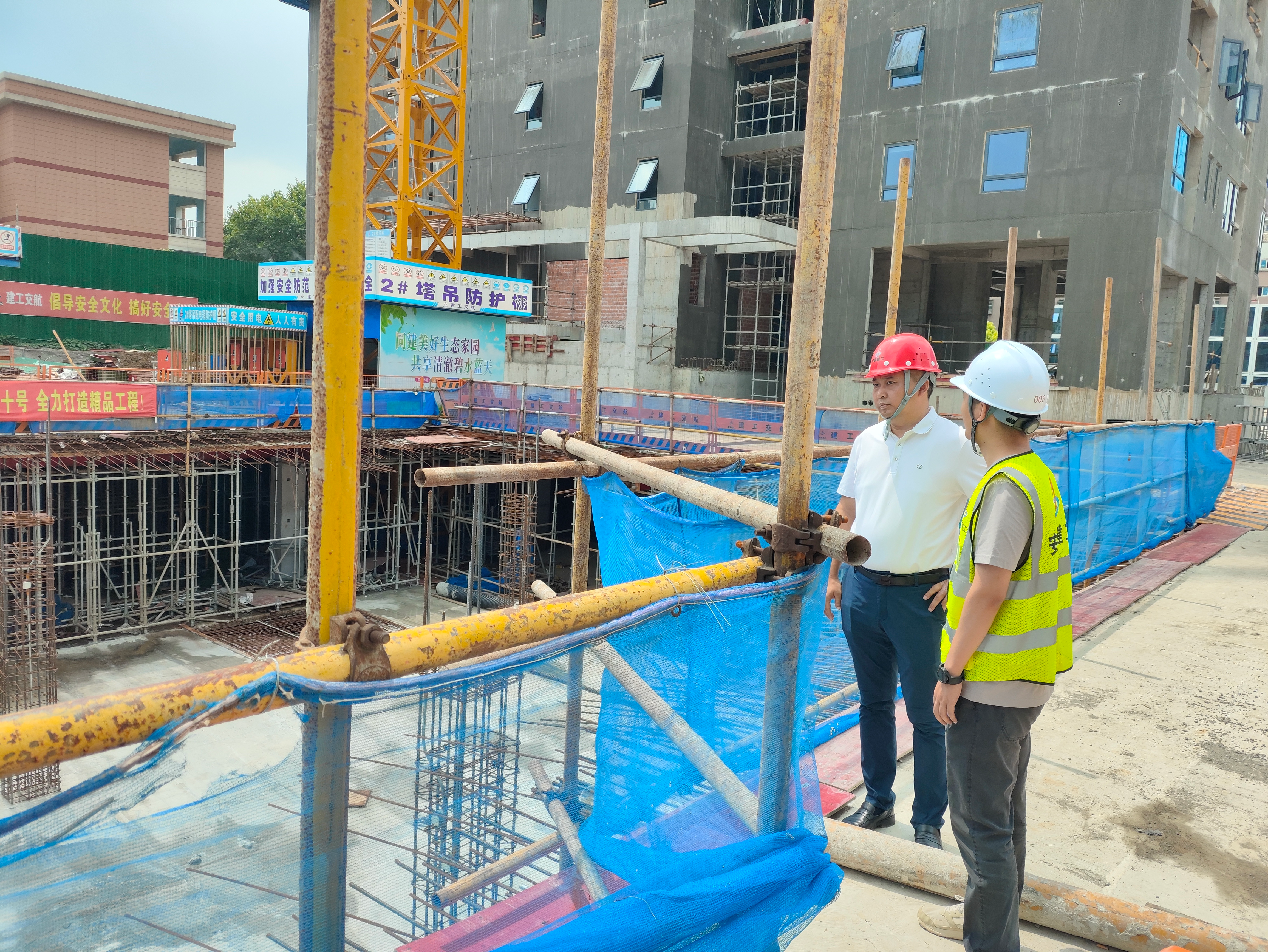 李登祥一行深入施工現(xiàn)場,詳細了解項目建設情況,對樣板間進度、安全生產管理、項目標準化建設等方面進行檢查。