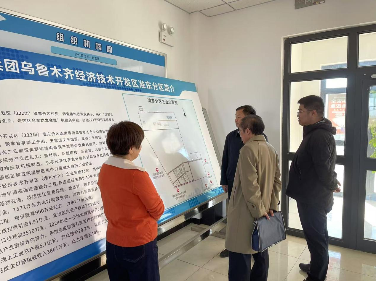 10月21日,建工交航省外分公司總經(jīng)理衛(wèi)蕾蕾陪同劉和文教授(現(xiàn)任新疆師范大學(xué)化學(xué)學(xué)院院長(zhǎng))赴兵團(tuán)十二師222團(tuán)經(jīng)開區(qū)淮東分區(qū)洽談投資合作事宜。