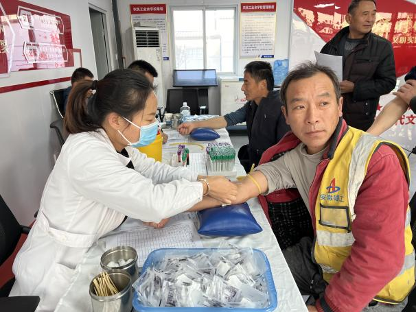 11月28日清晨,安徽省建設(shè)建材工會赴潭沖河家園項目開展農(nóng)民工免費體檢活動。安徽省建設(shè)建材工會(廳文明辦)四級調(diào)研員邱亮一行出席活動。