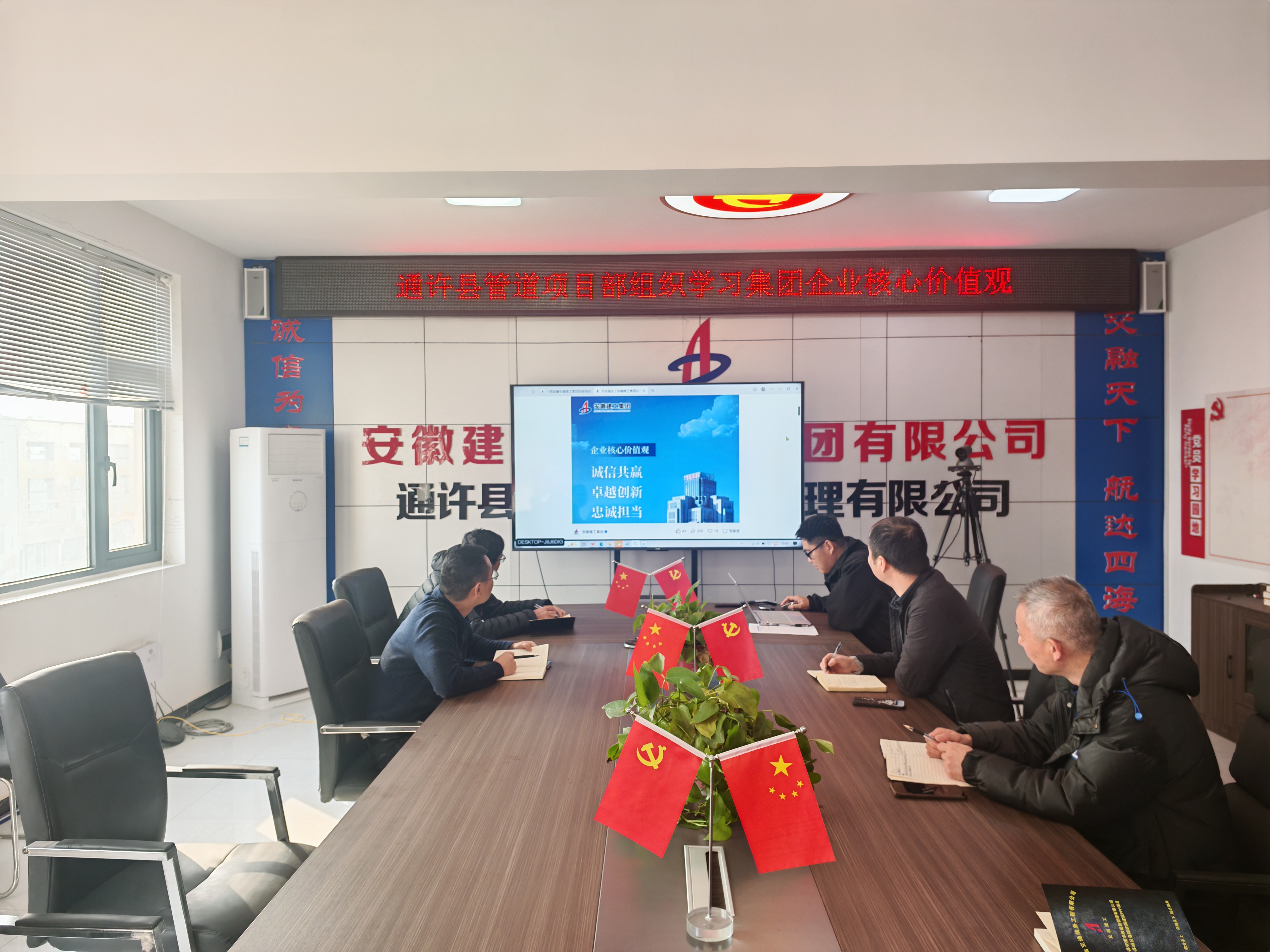 通許縣管道項(xiàng)目組織并召開(kāi)了集團(tuán)核心價(jià)值觀學(xué)習(xí)宣貫專題會(huì)議,傳達(dá)學(xué)習(xí)了集團(tuán)《關(guān)于開(kāi)展安徽建工集團(tuán)核心價(jià)值觀學(xué)習(xí)宣貫的通知》文件,對(duì)集團(tuán)核心價(jià)值觀“誠(chéng)信共贏 卓越創(chuàng)新 忠誠(chéng)擔(dān)當(dāng) 敬業(yè)清正”進(jìn)行闡釋講解。