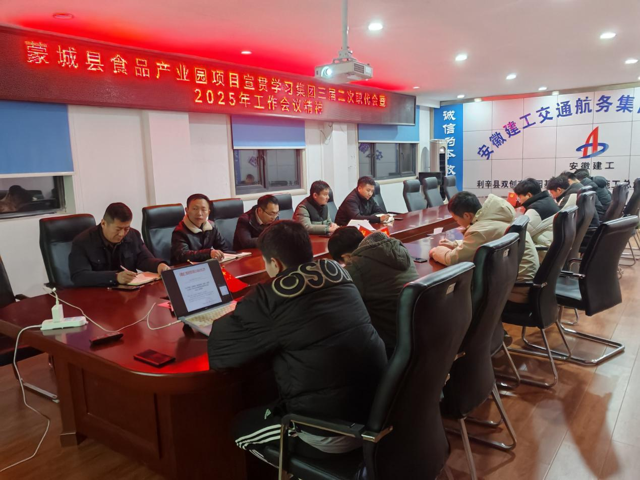 蒙城縣食品產(chǎn)業(yè)園項(xiàng)目第一時(shí)間召開專題宣貫會(huì),傳達(dá)集團(tuán)三屆二次職代會(huì)暨2025年工作會(huì)議精神。項(xiàng)目成員立足崗位實(shí)際,圍繞年度目標(biāo)任務(wù)進(jìn)行深入研討交流,談體會(huì)、謀發(fā)展、明方向。
