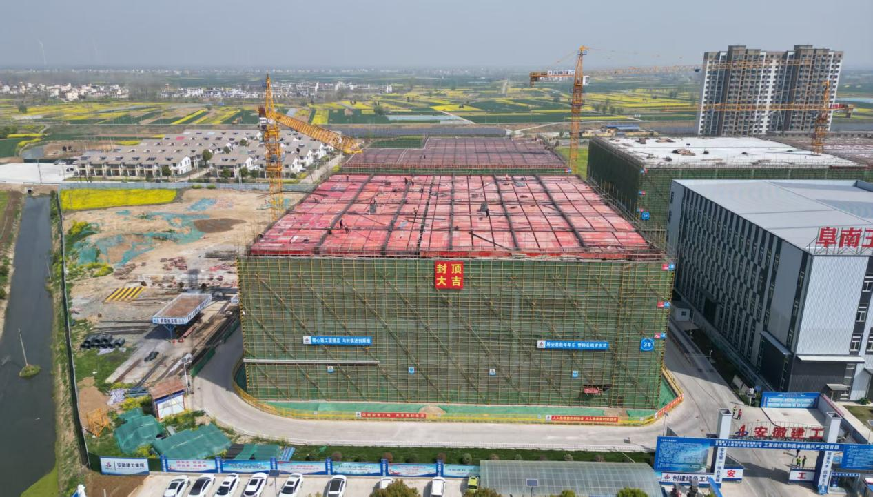 4 月 2 日,隨著最后一方混凝土澆筑完成,王家壩紅亮和美鄉(xiāng)村振興產(chǎn)業(yè)項目 5# 廠房主體結構順利封頂,標志著阜南縣鄉(xiāng)村振興重點工程取得階段性勝利。